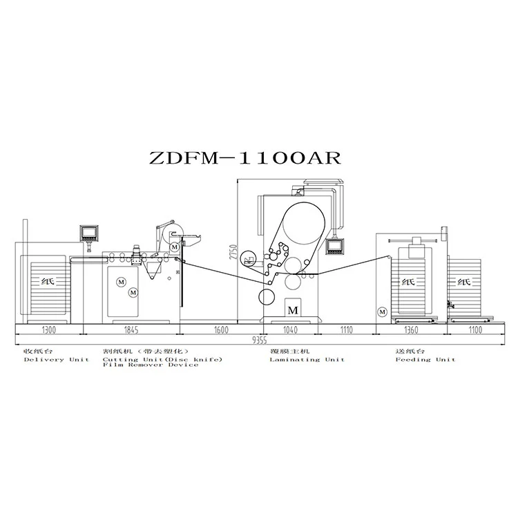 Alan planlaması: Otomatik Film Çıkarıcı Laminasyon Makinesinin toplam uzunluğu yaklaşık 9,4 metredir ve ayırıcı film geri dönüşüm ruloları için ek depolama ve değiştirme alanı ayrılacaktır. Sargı tarafında en az 2 metre çalışma kanalı ayrılması tavsiye edilir.
